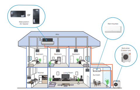 The SVZ comes in 9000 BTU to 36,000 BTU. For those that need a bigger capacity, the PVA comes in 12000 BTU to 42,000 BTU. These systems can directly replace the HVAC system for homes up to 4 tons.